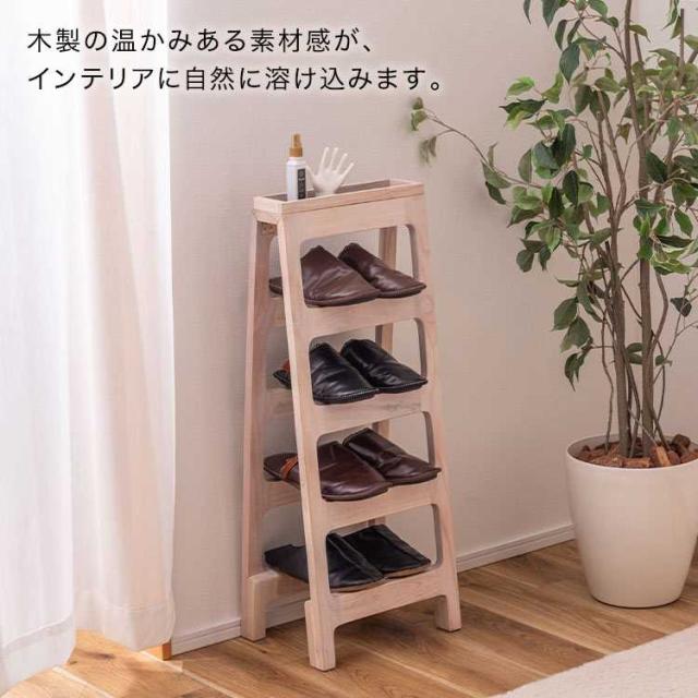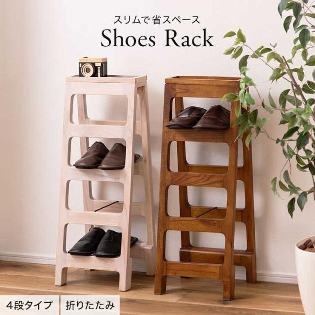 シューズラック 省スペース スリム 4段 スリッパラック 木製 おしゃれ 折りたたみ 靴箱 靴入れ 小さい 縦型 スリッパ置き 小物置き シンプル 靴 スリッパ 収納 ラック シューズボックス 下駄箱 玄関 リビング エントランス 一人暮らし 新生活 ホワイト ブラウン 茶 白 完成品