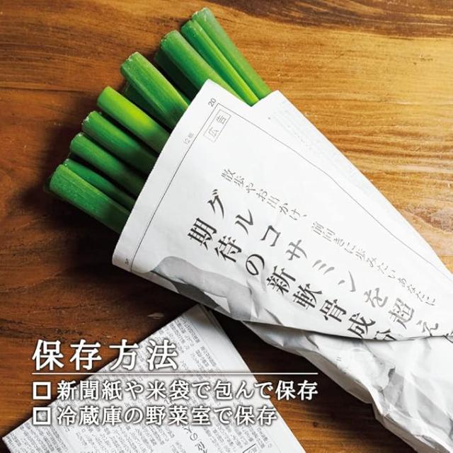冷蔵保存: 長ネギはビニール袋に入れ、冷蔵庫の野菜室で保存します。 水栽培: 根元の部分をカットした後、水につけて室内で日の当たる場所に置くと新鮮さを保ちつつ成長を楽しめます。 冷凍保存: カットして洗った後、乾燥させてから冷凍庫で保存。調理時には解凍せずに直接使用できます。