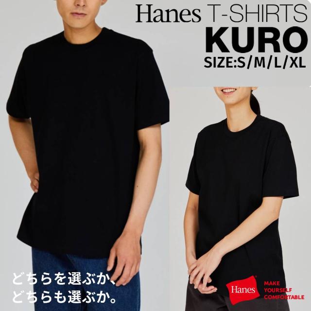 ヘインズ Hanes KURO クルーネックTシャツ Hanes T-SHIRTS SHIRO メンズ レディース ユニセックス オールシーズン Tシャツ ブラック 黒 カジュアル シャツ 半袖 シンプル おしゃれ パックT HM1B201