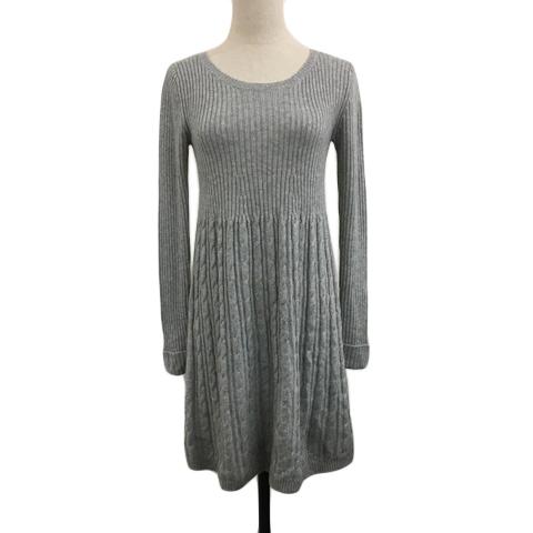 【中古】クミキョク 組曲 KUMIKYOKU ワンピース ニット フレア ミニ アルパカ混 リブ ケーブル編み 長袖 2 グレー