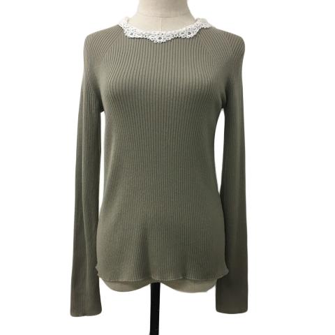 【中古】イエナ セーター ニット プルオーバー 付け襟 レース リブ 無地 ウール 長袖 ベージュ グレー