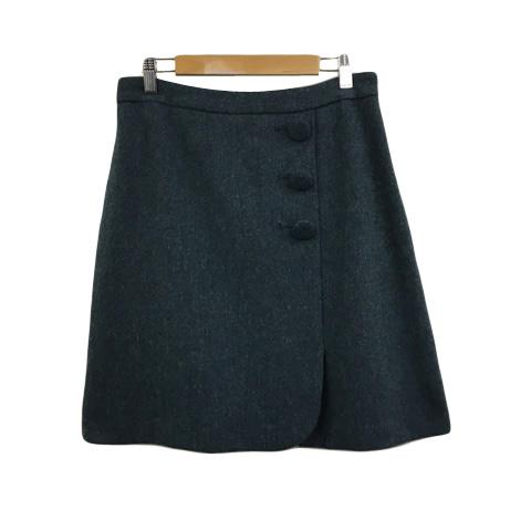 【中古】未使用品 クチュールブローチ スカート 台形 ミニ ウール スリット 40 L 緑 グレー グリーン レディース