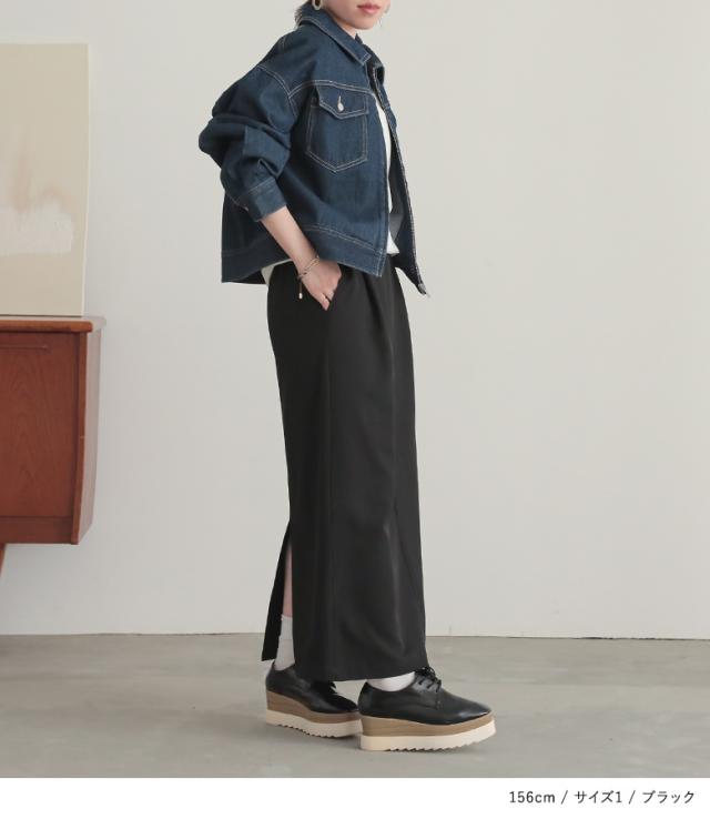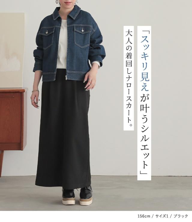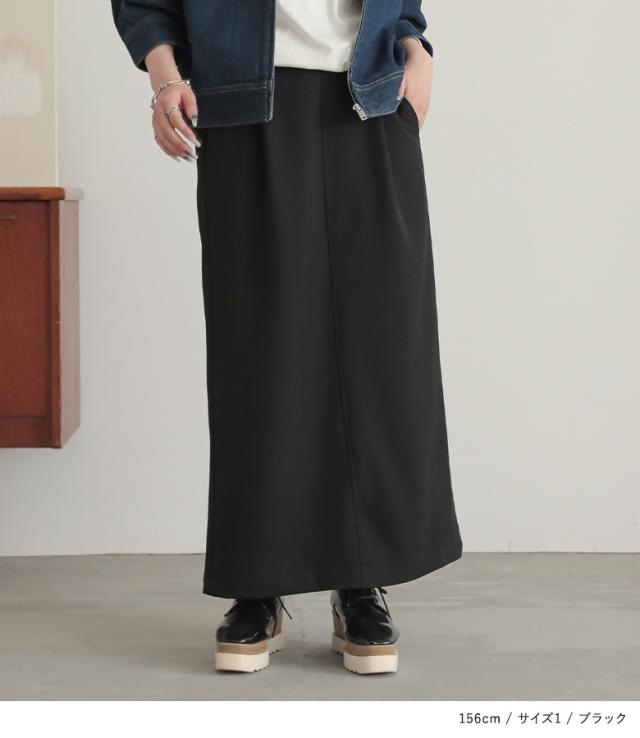 『ツイルナロースカート』【メール便不可】【20】[スカート レディース ボトムス ロング丈 マキシ丈 ナロースカート ウエストゴム ポケット ストレッチ 裏地付き 春 夏 秋]