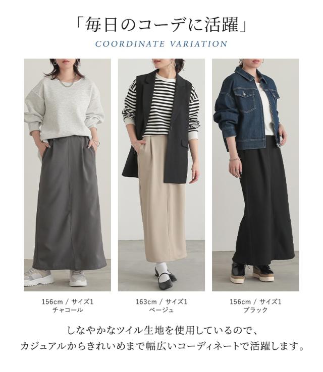 スカート レディース ボトムス ロング丈 マキシ丈 ナロースカート ウエストゴム ポケット ストレッチ 裏地付き 春 夏 秋 【TP】 ロングスカート マキシスカート タイトスカート n'OrLABEL ノア—ルレーベル 大人女子 大人可愛い お洒落可愛い 大人カジュアル ベーシック ニュアンス ラフ エフォートレス オフィスカジュアル 上品 きれいめ ナチュラル タック ベルトループ スリット 無地 ツイル生地 おうちで洗える カジュアル シンプル モード キレカジ フェミニン ゆったり ゆる 楽ちん 動きやすい すっきり見え Sサイズ Mサイズ Lサイズ LLサイズ 3Lサイズ XLサイズ ぽっちゃり 体型カバー 大きいサイズ プラスサイズ 10代 20代 30代 40代 50代 60代 女子会 オフィス 通勤 通学 お買い物 お出掛け 旅行 リゾート レジャー おしゃれ お洒落 トレンド 流行 osharewalker オシャレウォーカー おしゃれうぉーかー ベージュ グレー 灰色 チャコールグレー チャコール ブラック 黒[ID]11bn09r