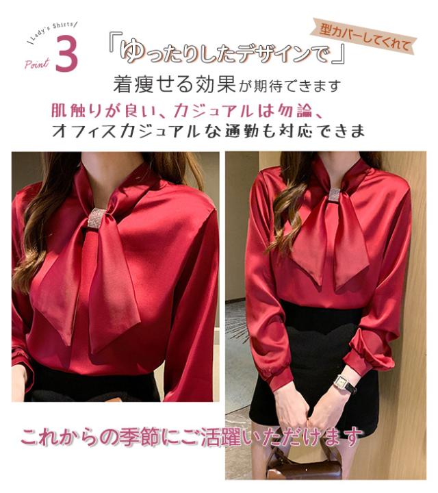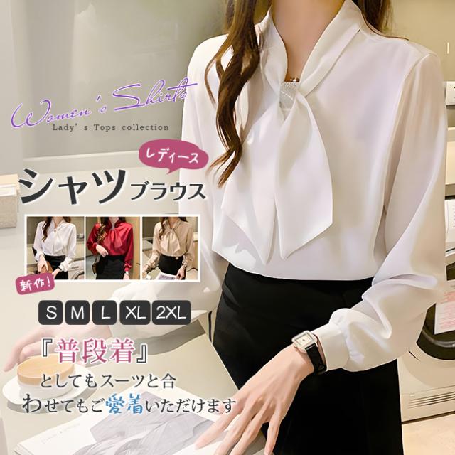 シャツ ブラウス レディース シフォン リボン トップス ボウタイブラウス 長袖 爽やか おしゃれ シフォンブラウス カジュアル リボンブラウス 春 秋きれいめ オフィス 通勤 OL デート お出掛け