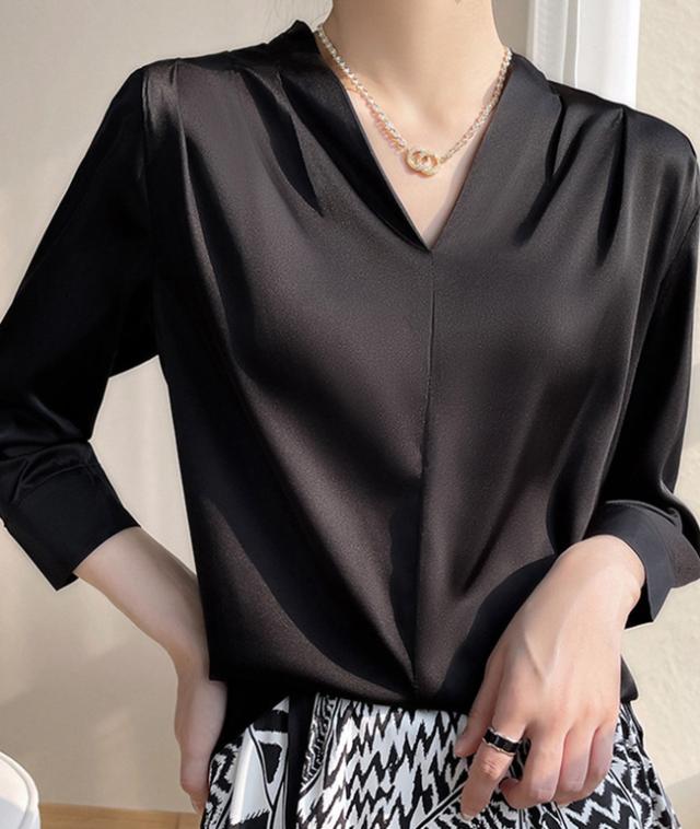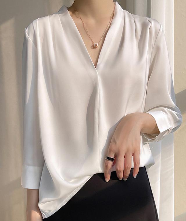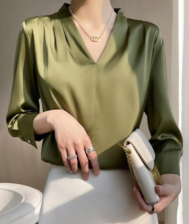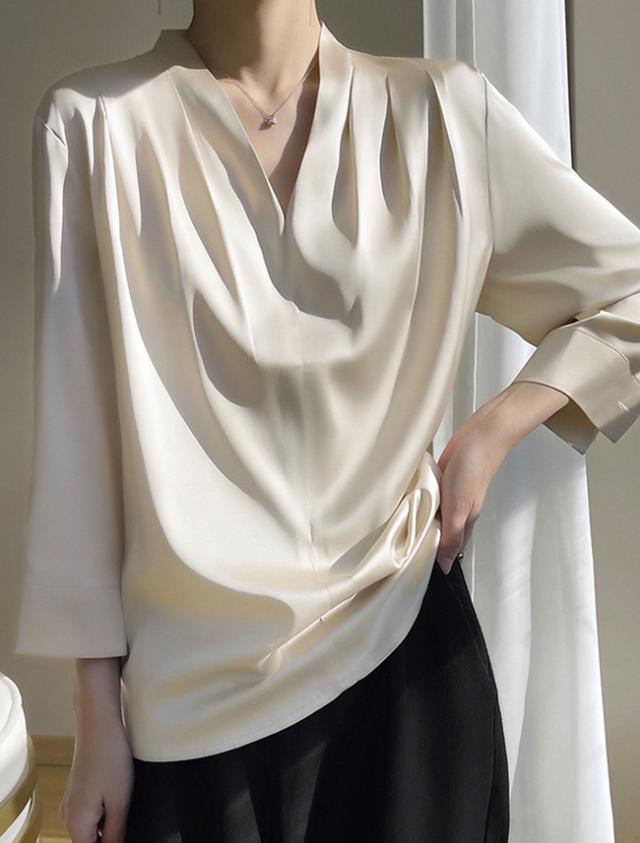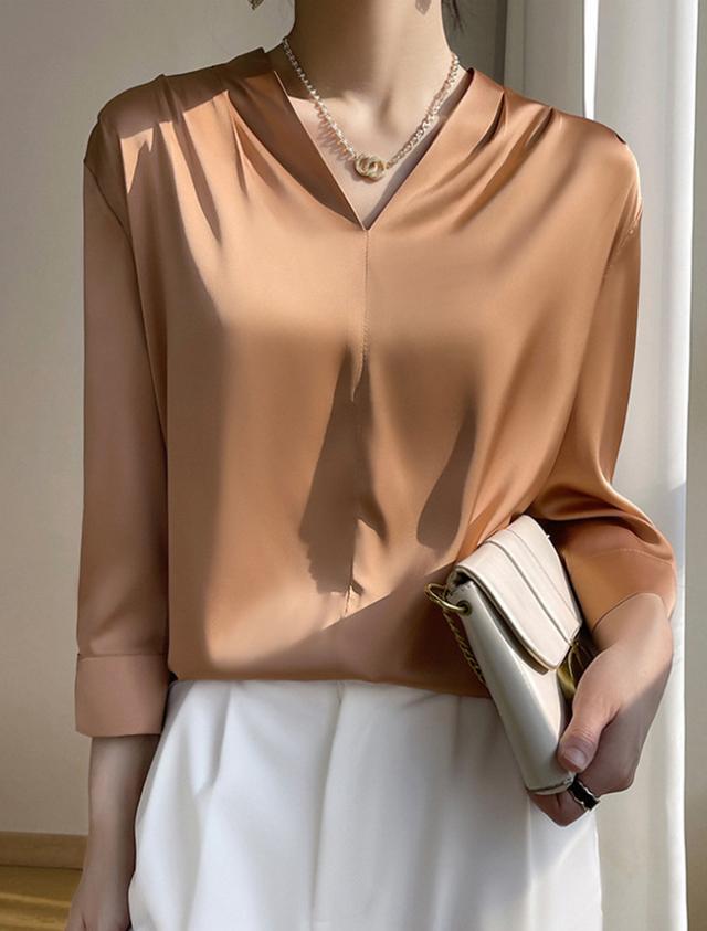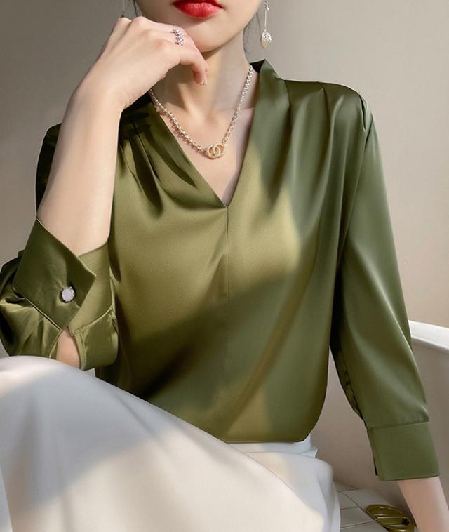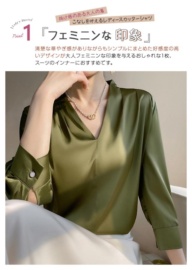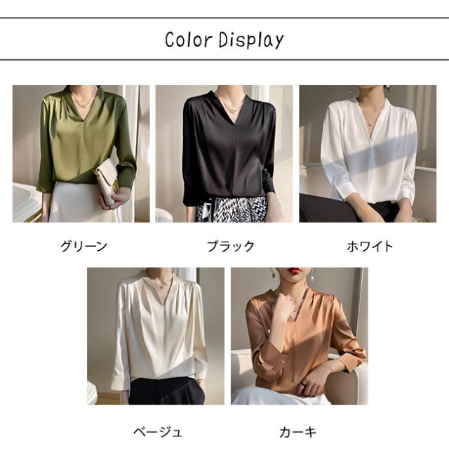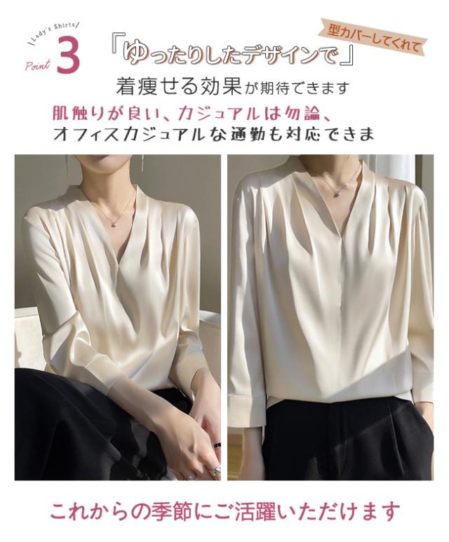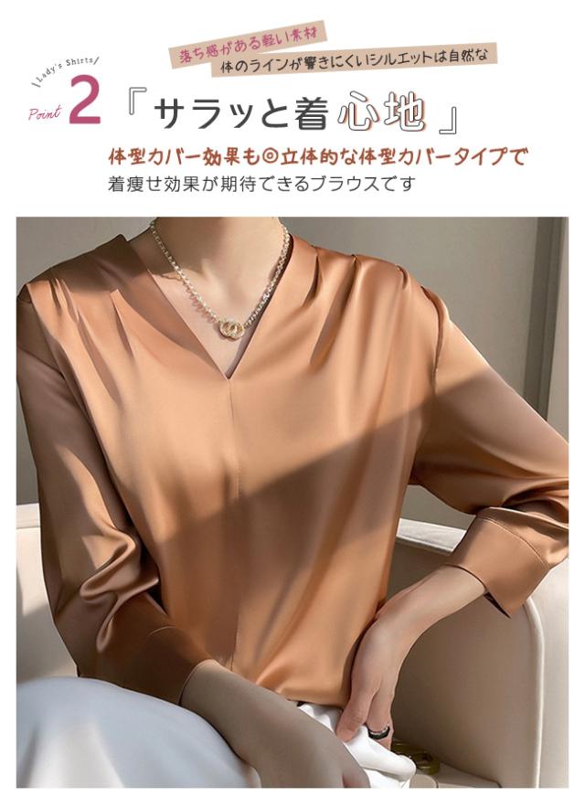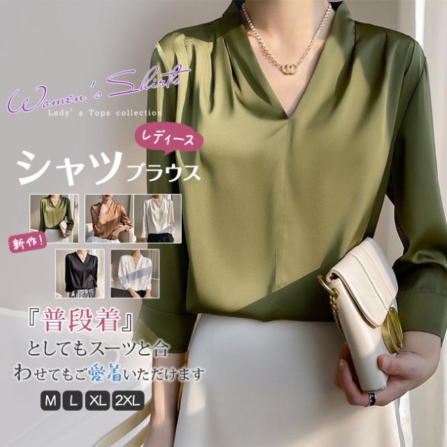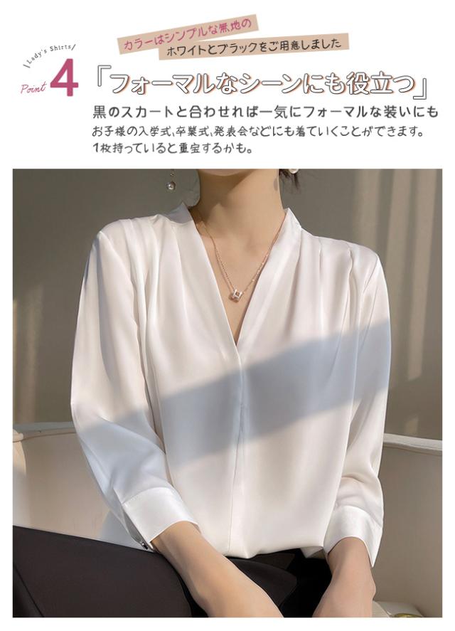 シャツ ブラウス レディース 長袖 シフォン Vネック 上品 トップス 無地 体型カバー 大人 おしゃれ エレガント 着回し 日常 オフィス カジュアル 通勤 ビジネス OL 着痩せ 大きいサイズ 春秋冬
