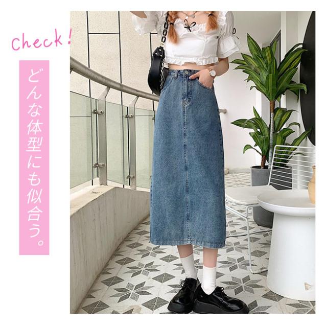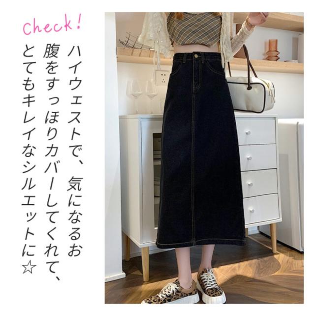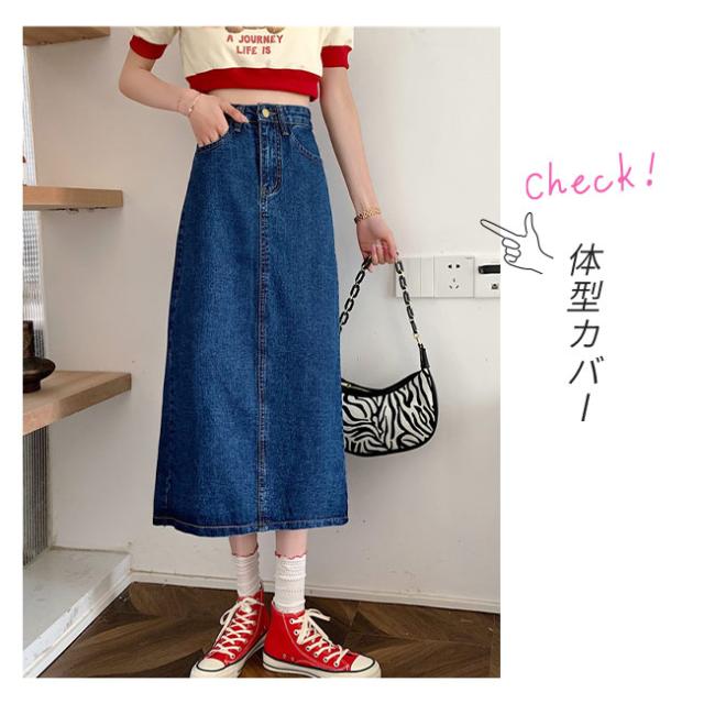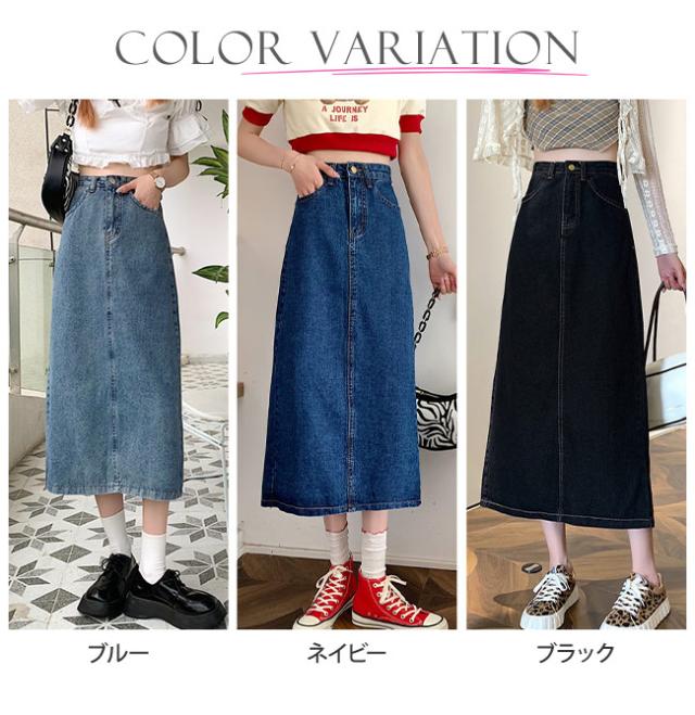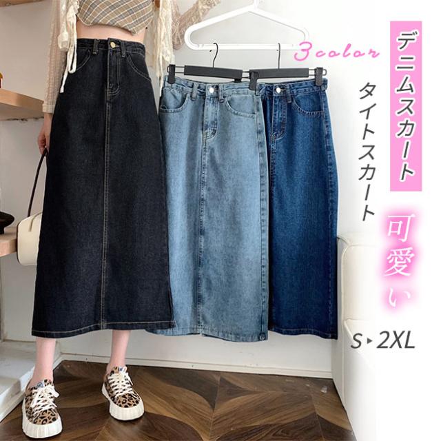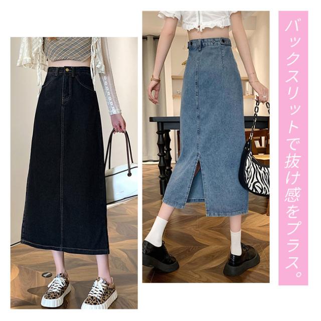 デニムスカート タイトスカート レディース ロングスカート 薄手 バックスリット ボトムス きれいめ 可愛い お洒落 無地 カジュアル シンプル ポケット