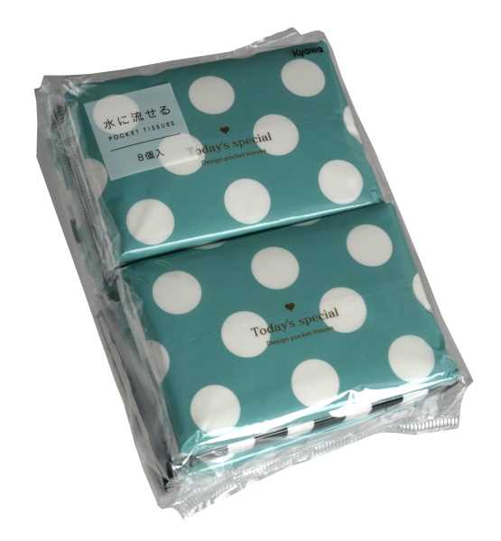 水に流せるポケットティシュ Todays special 20枚(10組)×8個入 (100円ショップ 100円均一 100均一 100均)