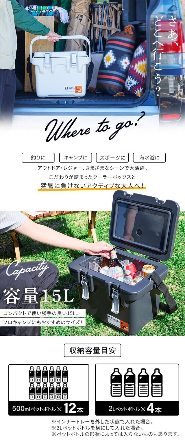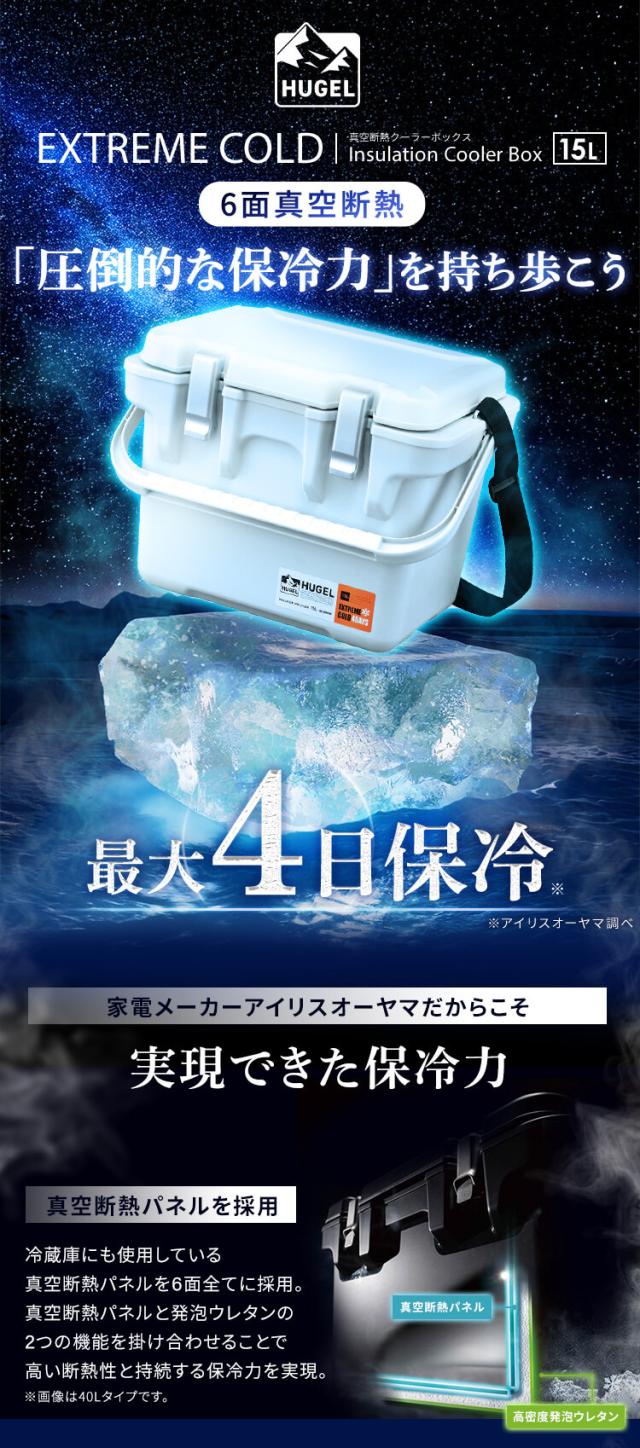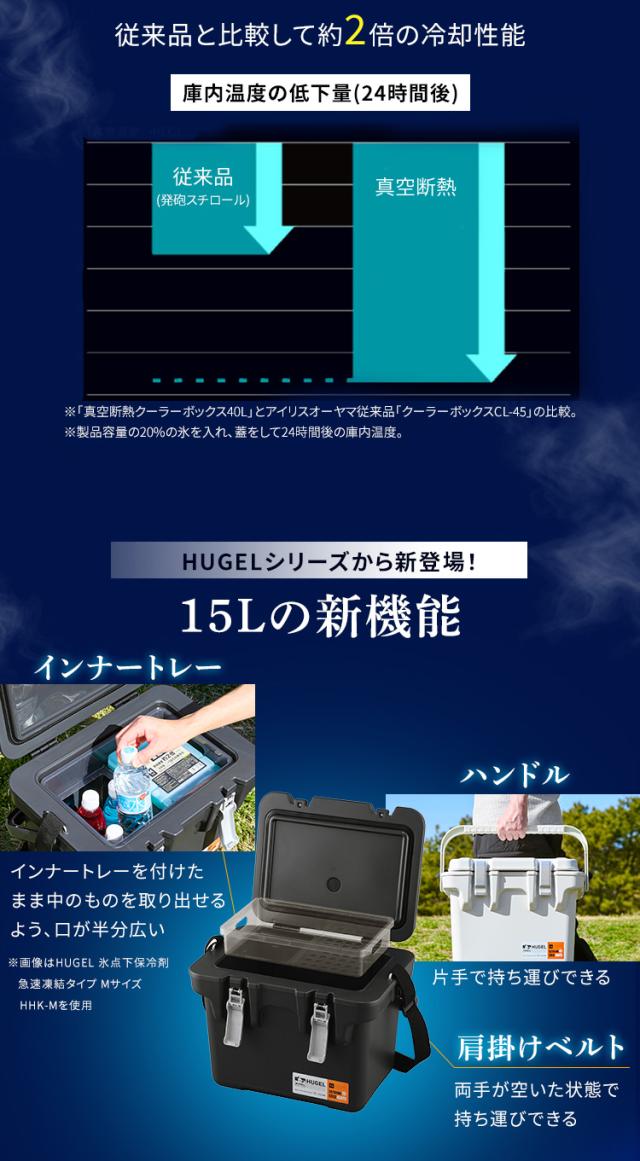 (検索用:クーラーボックス・小型・15L・釣り・真空断熱クーラーボックス・保冷力・ハード・インナートレー付・ハンドル・持ち手・運びやすい・ショルダーベルト・肩掛け・部活・キャンプ・アウトドア・BBQ・買い物・HUGEL・ヒューゲル・4967576769211・4967576769228・アイリスオーヤマ)