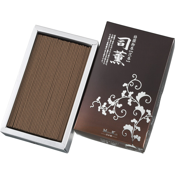 日本香堂 お線香 バラ詰 司薫 沈香 23902 燃焼時間約25分、化粧箱入、日本製、かなり少ない煙、花、お線香サイズ約140mm、14cm、お供え、家庭用、仏事用、良質