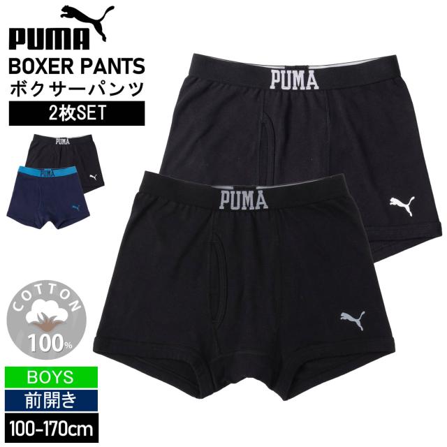 PUMA プーマ パンツ キッズ 下着 ボクサーパンツ 2枚セット ボーイズ 綿100% 前開き 肌着 コットン セットアイテム スポーツ ブランド 無地 ロゴ まとめ買い プレゼント 男の子下着 インナー 黒 紺 2025ss outfit