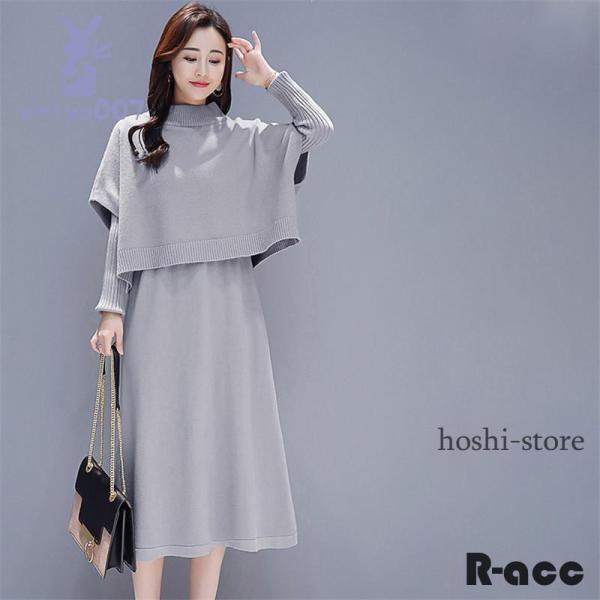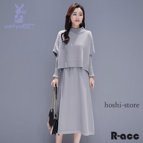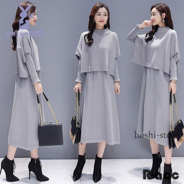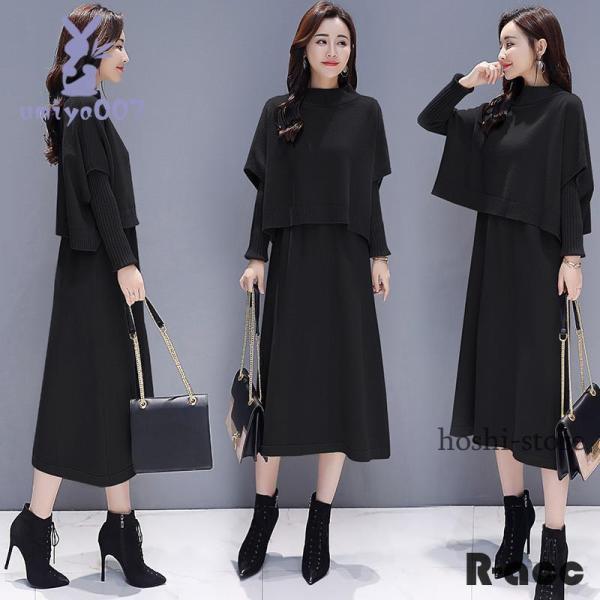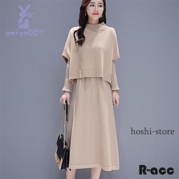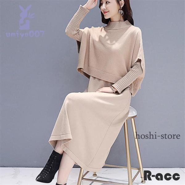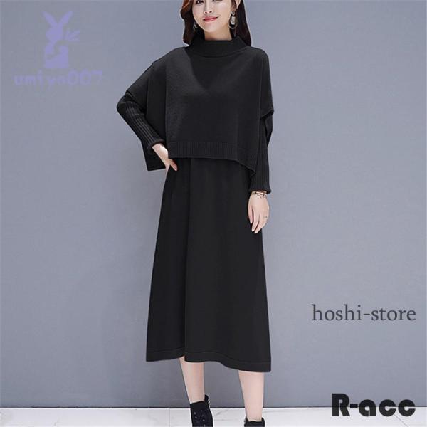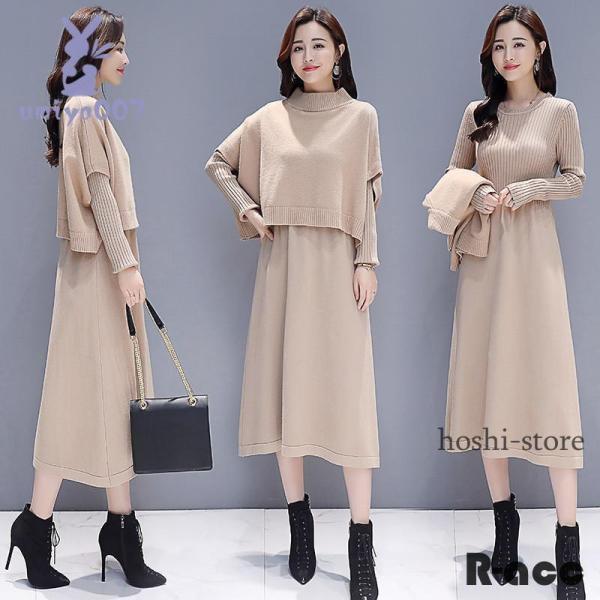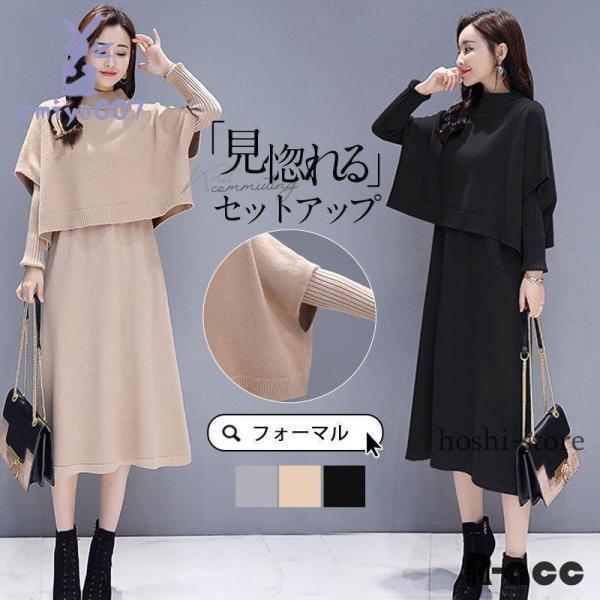 卒業式 服 母 服装 セットアップ レディース ニットワンピース 上下セット ハイネック ニットベスト セーター ロング丈 春 秋 冬 カジュアル 七五三 ママ