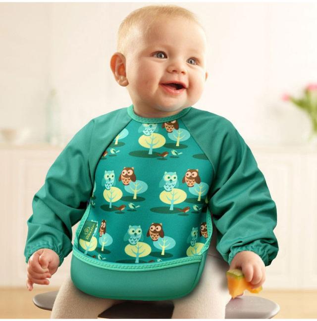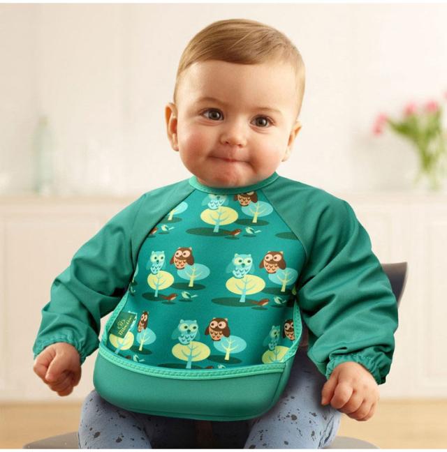 ●ウェットスーツ素材と防水素材でできた、とっても軽くて軟らかい袖付きのベビー用エプロンです。