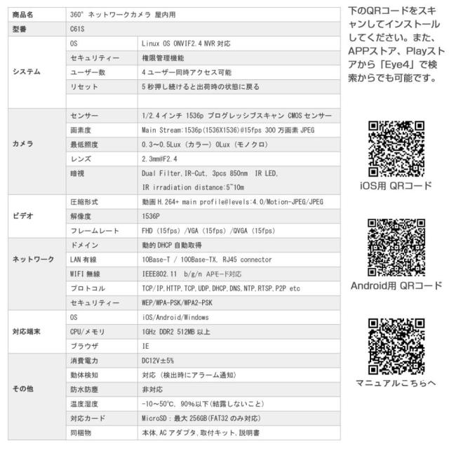 ・簡単設定:1、カメラを起動し、LANケーブルでルーターにカメラを接続します。2、無料アプリ[eye4]をインストールし、LAN検索を使用してデバイスを追加した後、WIFIを設定するだけで使えます。