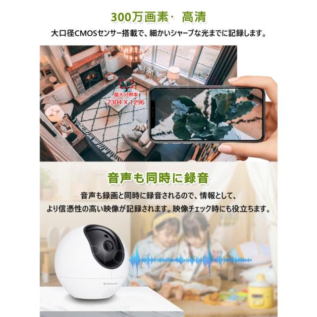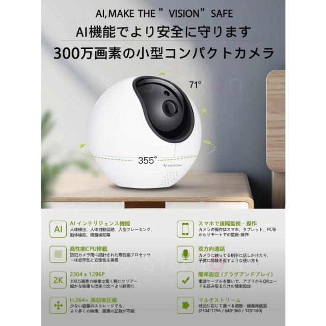 小型 防犯カメラ ワイヤレス CS990 VStarcam 300万画素 ONVIF対応 AI機能搭載 人体追跡 動体検知 MicroSDカード 録音 遠隔監視 屋内用 6ヶ月保証