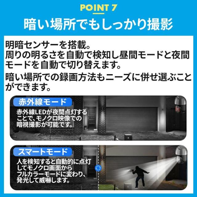 6.赤外線LEDと通常LED二種類搭載で夜間映像も鮮明