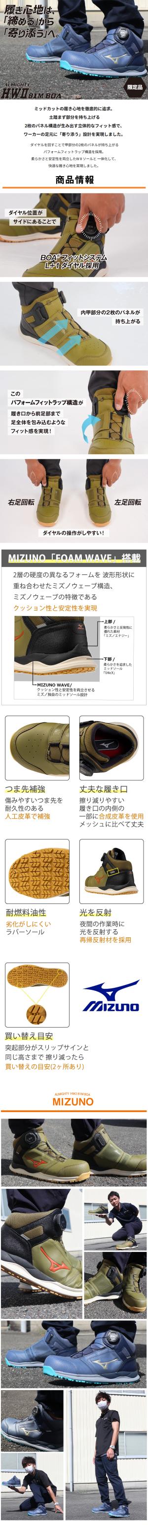 安全靴 ハイカット ミズノ オールマイティ MIZUNO ALMIGHTY HW2 81M BOA ダイヤル式 2025年 限定 新商品 サイドボア メンズ レディース スニーカー JSAA規格 通気性 疲れにくい おしゃれ 樹脂先芯 軽量 耐滑 建築 建