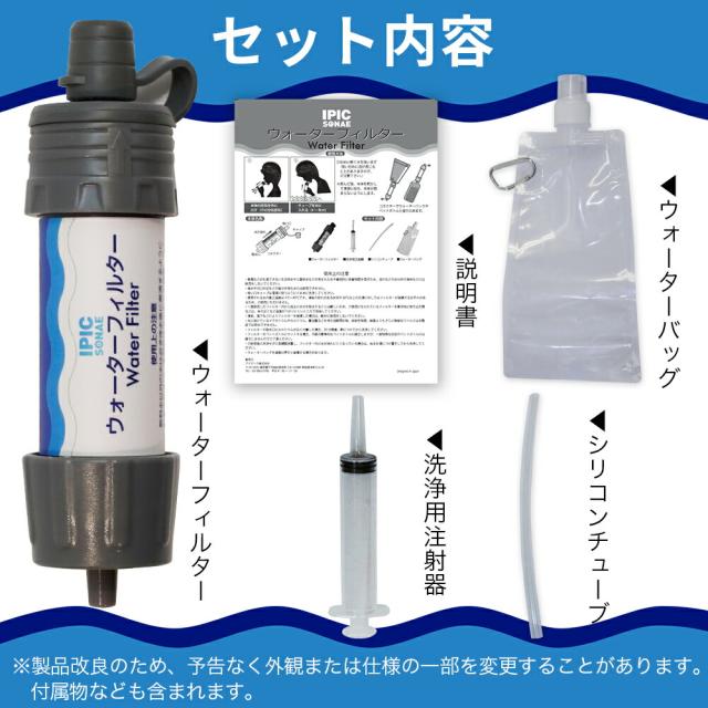公式 IPIC SONAE ウォーターフィルター WaterFilter 防災 医師監修 水 断水 緊急 備蓄 ろ過器 携帯浄水器 携帯用浄水器 アウトドア サバイバル キャンプ 安心 備蓄 使い方簡単
