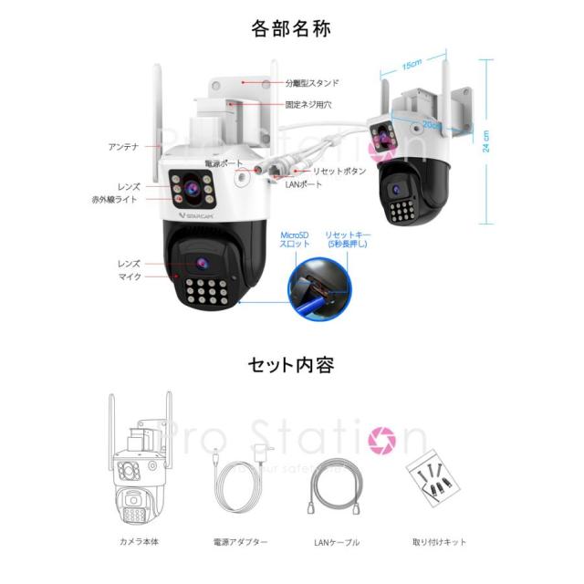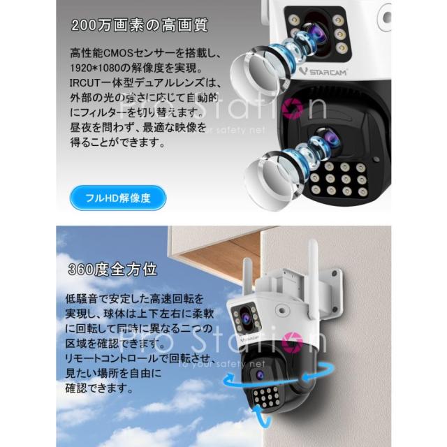 防犯カメラ ワイヤレス CS663DR デュアルレンズ1台で2台分の役割 VStarcam 200万画素 夜でもカラー撮影 動体検知 LED投光器 ONVIF WIFI APモード MicroSDカード 屋内外兼用 6ヶ月保証