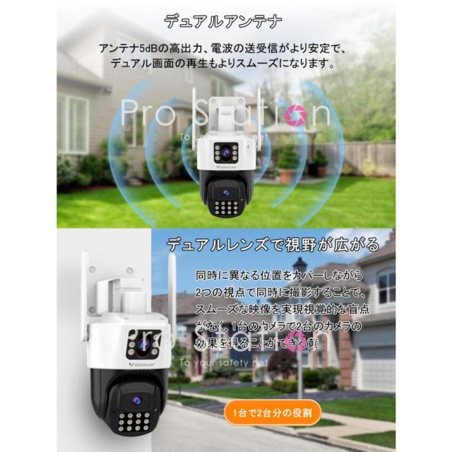 防犯カメラ ワイヤレス CS663DR デュアルレンズ1台で2台分の役割 200万画素 夜でもカラー撮影 LED投光器 ONVIF APモード 屋内外兼用 6ヶ月保証