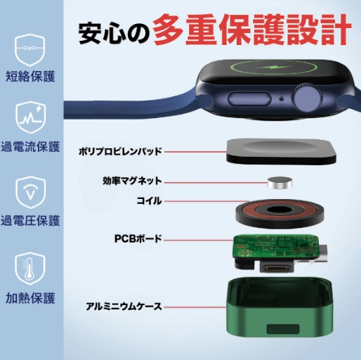 アップルウォッチ 充電器 旅行 Apple Watch 充電 持ち運び USB iPhone 軽量 急速充電 アップル SE AirPods 対応 キーホルダー