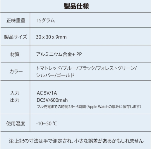 フル充電までの時間:2.5〜3時間(Apple Watchの厚みに依存します)