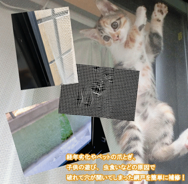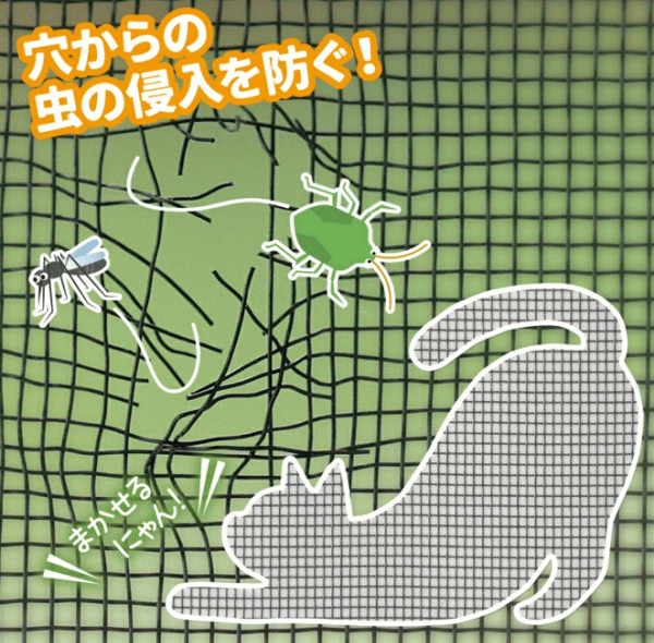 ![]() ![]() ![]() ![]() ![]() ![]() ![]() ![]() ![]() ![]() 網戸の穴をニャンコがふさいで虫の侵入をストップ! ■網戸にモノや昆虫などがぶつかってできた穴やキズ、網戸の劣化による破れは見栄えが悪い だけでなく嫌な虫が入ってきます! ■網戸の穴や破れを貼るだけで簡単に補修ができるニャンコの可愛い補修シール。 ■シールタイプだから切らずに簡単に貼れる。 ■大きな穴でも2〜3枚並べて貼れば補修完了! ■メッシュ柄の耐久性の高いガラス繊維素材。 |
