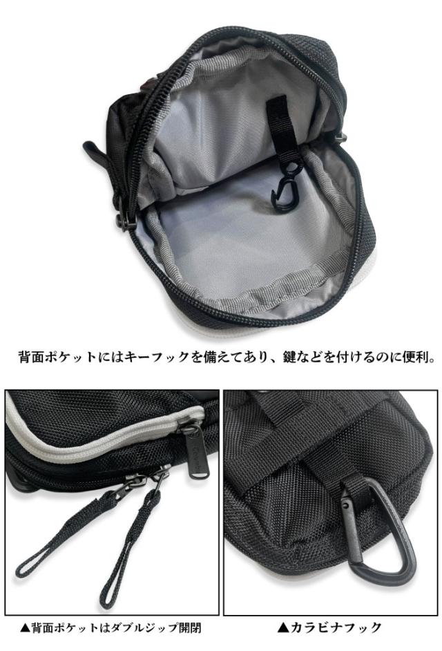 さらにバッグ内部にはキーフックも付属。背面のホック式ループやカラビナを使い、パンツやバッグに取り付けられるのもポイントです。
