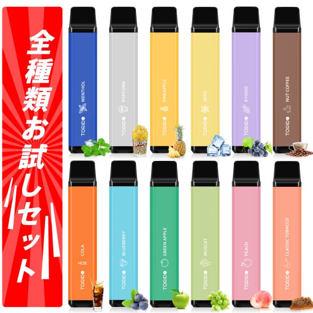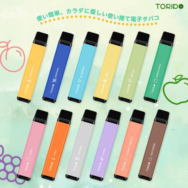 ★TORIDO 使い捨て電子タバコ 選べる12風味、メンテ不要、充電不要、1本最大2500回吸引可能、コストを抑えたい方向け自信を持ってお勧めできる一品です。