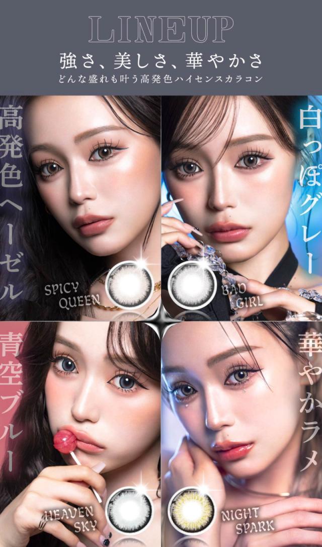 ・展開カラー:SPICY QUEEN(スパイシークイーン) BAD GIRL (バッドガール) HEAVEN SKY (ヘブンスカイ) NIGHT SPARK (ナイトスパーク)