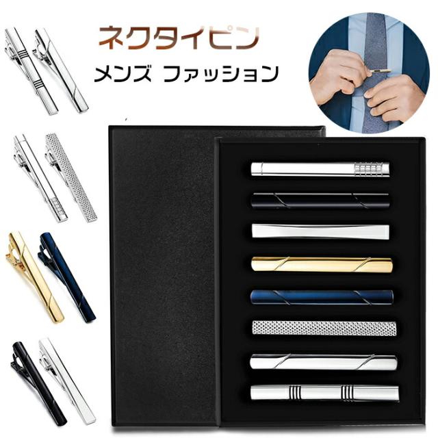 ネクタイピン 8本セット メンズ ファッション アクセサリー シンプル 日常仕事 結婚式 スーツ ビジネス 真鍮製 タイピン おしゃれ 高級