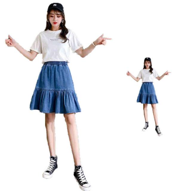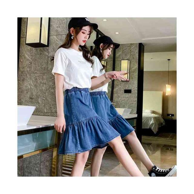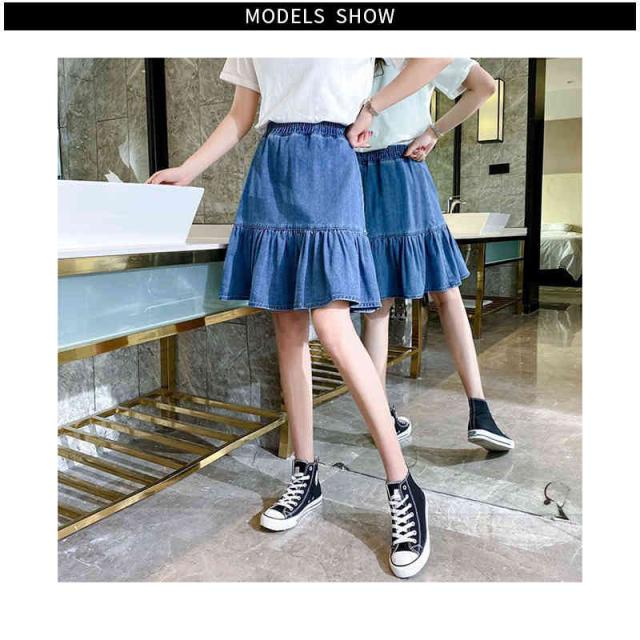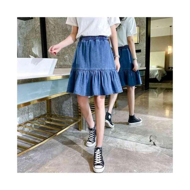 デニムスカート 春夏秋 おしゃれスカート 女の子 フリルスカート ショートスカート 子供服 プリーツスカート 無地 フレアスカート デニム スカート ウエストゴム 可愛い お洒落 カジュアル キッズ 女児 ガールズ プリーツスカート