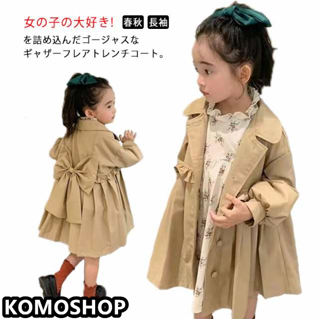 きれいめ キッズ 女の子 子供服 バックリボン スプリングコート チェスターコート ギャザー フレア 春 秋 長袖 アウター トレンチコート コート ワンピース きれいめ 春アウター 通園 通学 トレンチコート