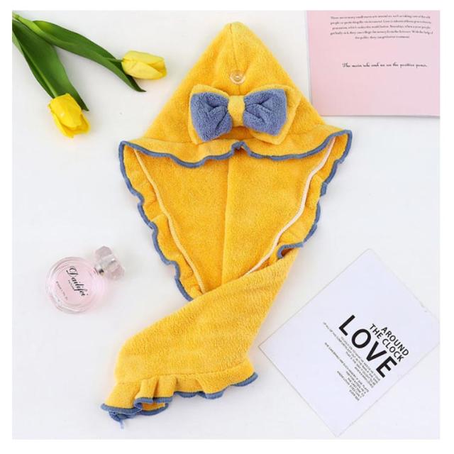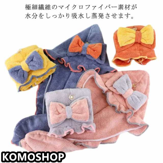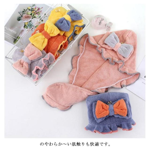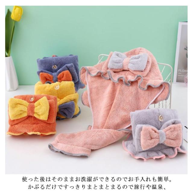 タオル ヘアドライタオル ドライキャップ 髪の毛 タオルキャップ 髪 乾かす 吸水 イエロー ヘアキャップ ヘアターバン お風呂上がり バス用品 プール ブルー ピンク オレンジ リボン