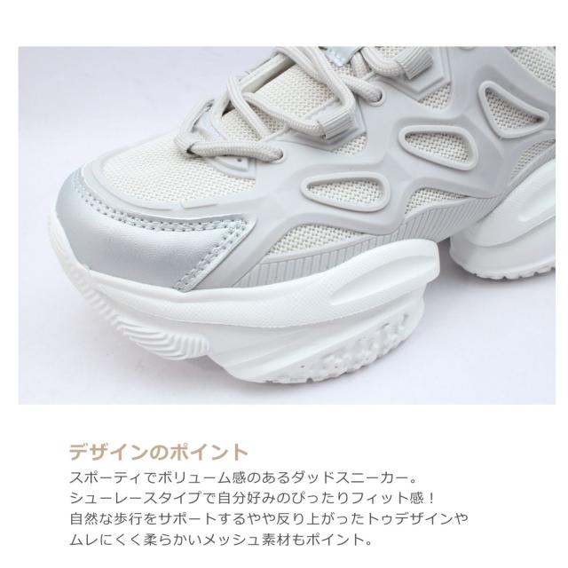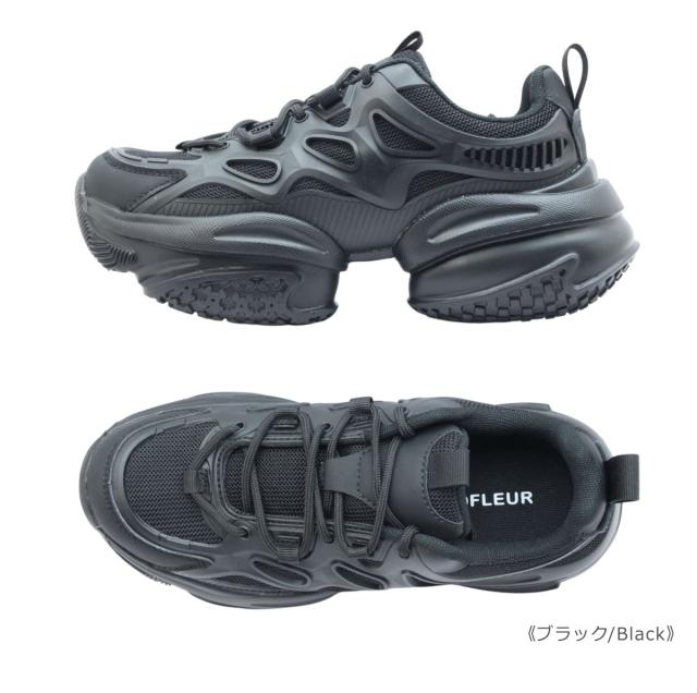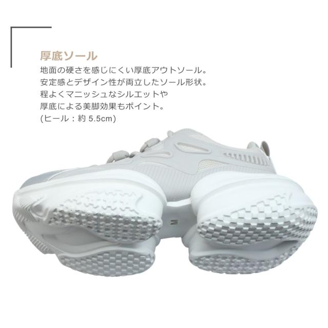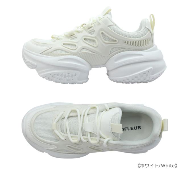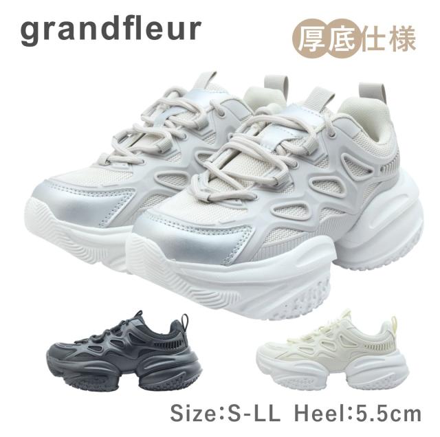 grandfleur グランドフルール レディース スニーカー QNK 0300 300 ローカット ダッド 厚底 柔らかい 紐 靴 黒 白 ブラック ホワイト グレー