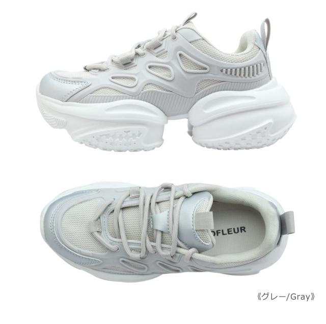 | grandfleur グランドフルール レディース スニーカー QNK 0300 300 ローカット ダッド 厚底 柔らかい 紐 靴 黒 白 ブラック ホワイト グレー |