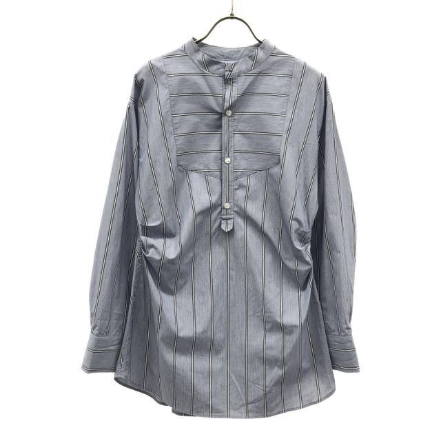 AMERI UNDRESSED アメリ ストライプ 長袖 バルーンスリーブ シェイプ コットンシャツ F ブルー系 レディース