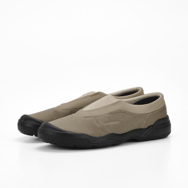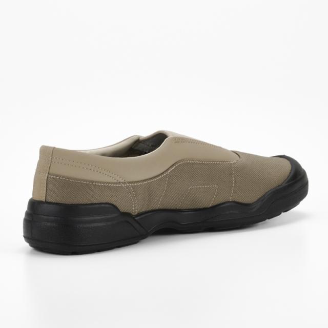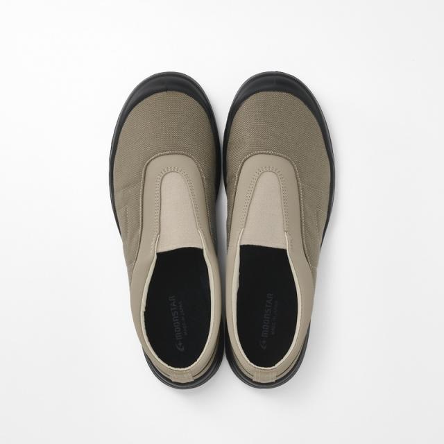 ムーンスターのロングセラー商品を現代のライフスタイルに向けて国産で再構築した「SKOOLER」シリーズ。バイオLTタイプの運動履きから発展させたスリッポン。ミリタリートレーナーのような雰囲気に。アッパーにはコーデュラのポリエステルを使用。