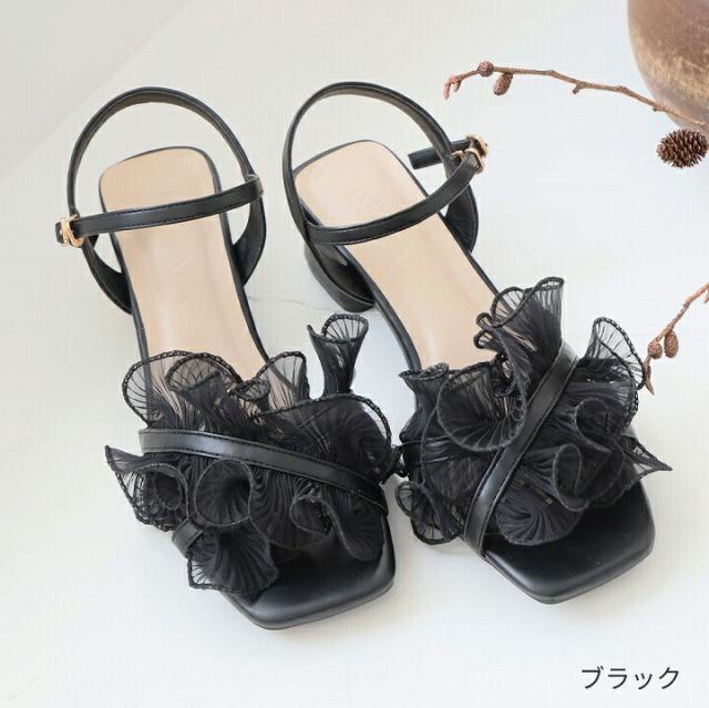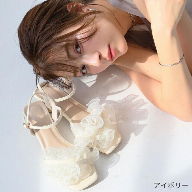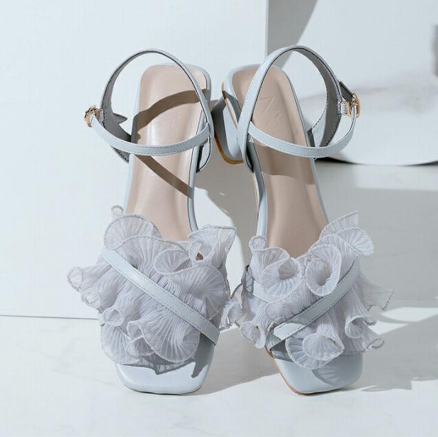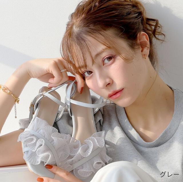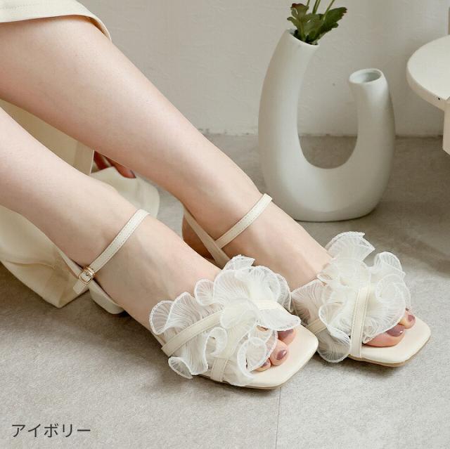 ・ボリュームのシアーフリルが華やかなストラップサンダル!