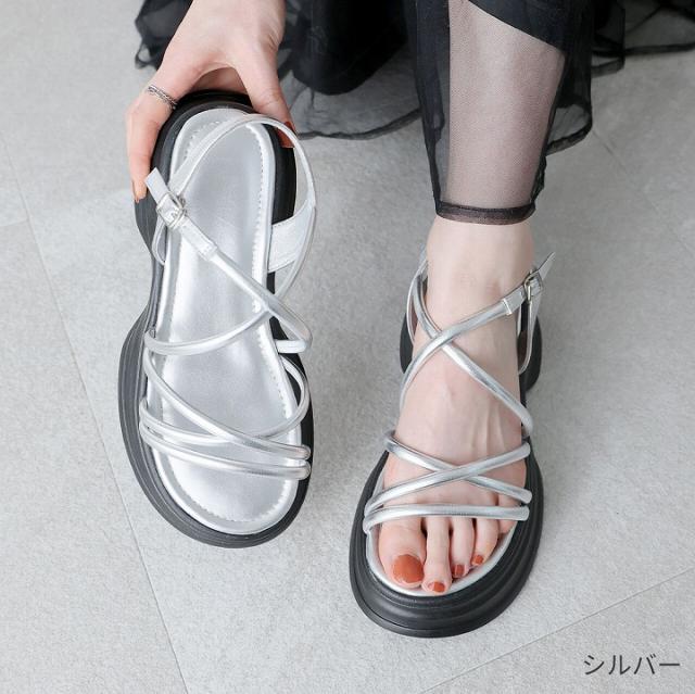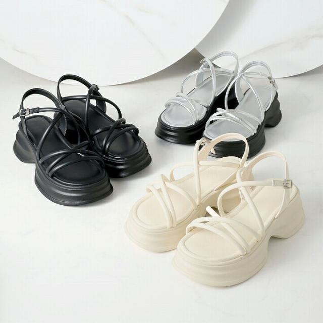 【MAX20%OFFクーポン】 サンダル レディース 夏新作 VIVIAN 厚底サンダル 厚底 ナロー ストラップ アンクル ブラック 黒 白 アイボリー シルバー メタリック 旅行 レジャー スポーツサンダル スポサン V59001SM