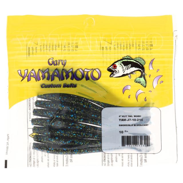 ゲーリーヤマモト ワーム 4インチ カットテールワーム 214 スモーク/ブルー&ブラック&ゴールドフレーク【ゆうパケット】