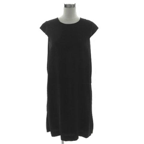 【中古】アンタイトル UNTITLED ワンピース タック フレンチスリーブ ミディ丈 シンプル 無地 日本製 ブラック 黒 3