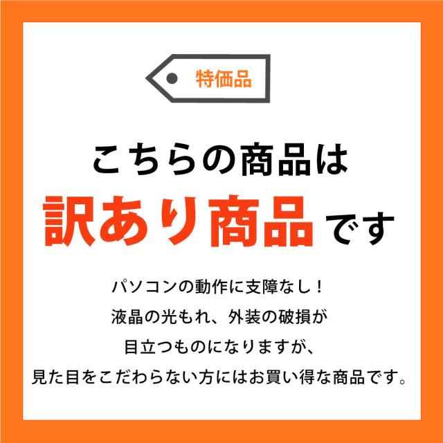 | ご注意 | ・液晶の光もれ、外装のヒビ・割れやヒンジカバーの欠損があります。見た目はちょっと 訳有りだけど全然使える!訳ありパソコンです。パソコンの動作には支障ありません。 ・中古品のため、バッテリーは保証外となります。ACアダプタを接続してご使用ください。 ・本体に擦り傷や日焼けなど多少の使用感がございます。 ・OSは中古PC再生用にインストールされたものであり、メーカー出荷時とは内容が異なります。 |