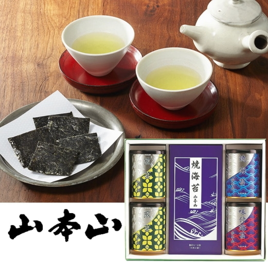一枚一枚丁寧に焼き上げた板のりと食膳用の焼海苔・味付海苔に、程よい渋みの山本山オリジナルブレンドの煎茶を詰合せました。 山本山 海苔・銘茶詰合せの商品詳細 ブランド名 山本山 内容 ●焼海苔8切36枚×1、味付海苔8切36枚×1、板のり12枚(6枚2袋)×1、煎茶70g×2 【アレルゲン:小麦】 【化粧箱入】