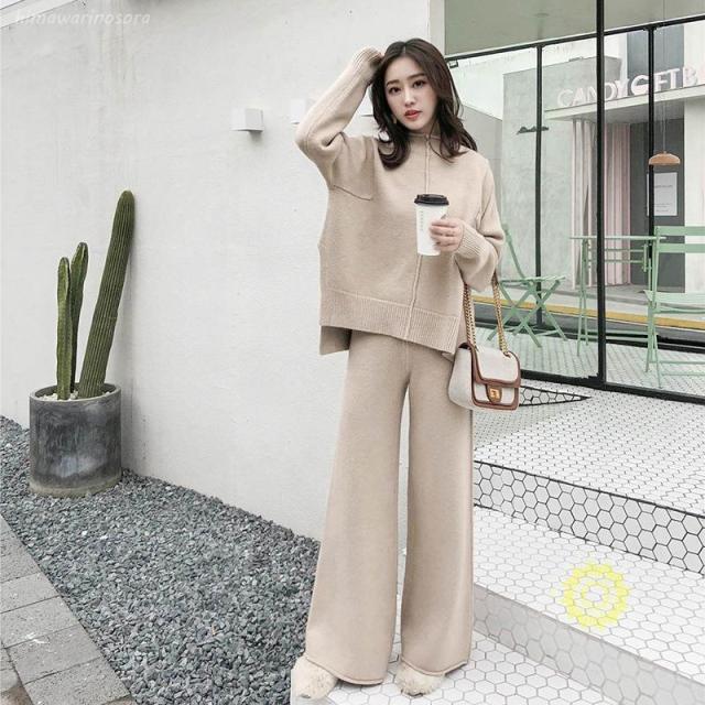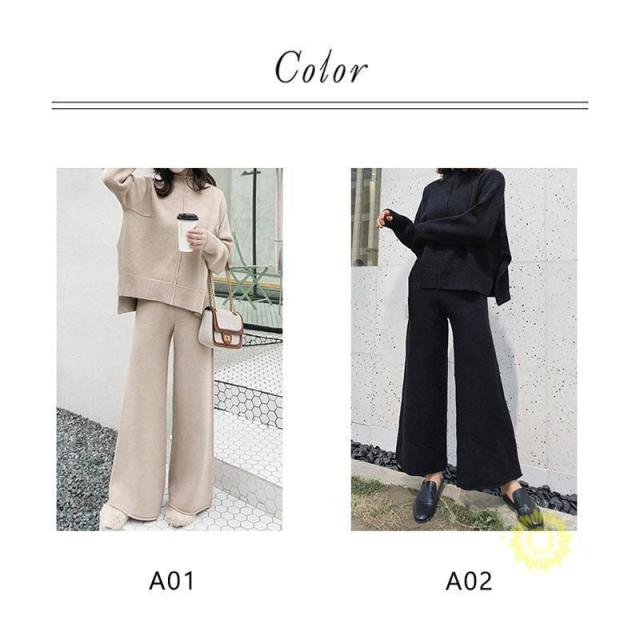 パンツスーツ レディース ニットセーター ワイドパンツ セットアップ 長袖 卒業式 服 母 ママ スーツ 入学式 卒園式 入園式 セレモニー 部屋着