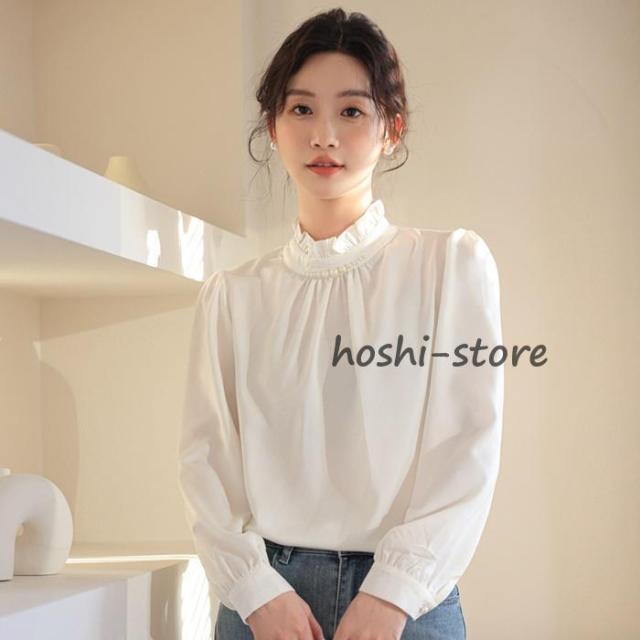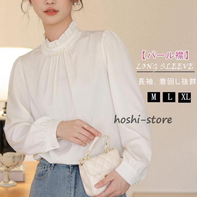 パール付き ブラウス レディース パール フォーマル トップス シャツ ハイネック 長袖 ギャザー ハイネックブラウス レディースブラウス 長袖ブラウス 入学式 卒業式 発表会