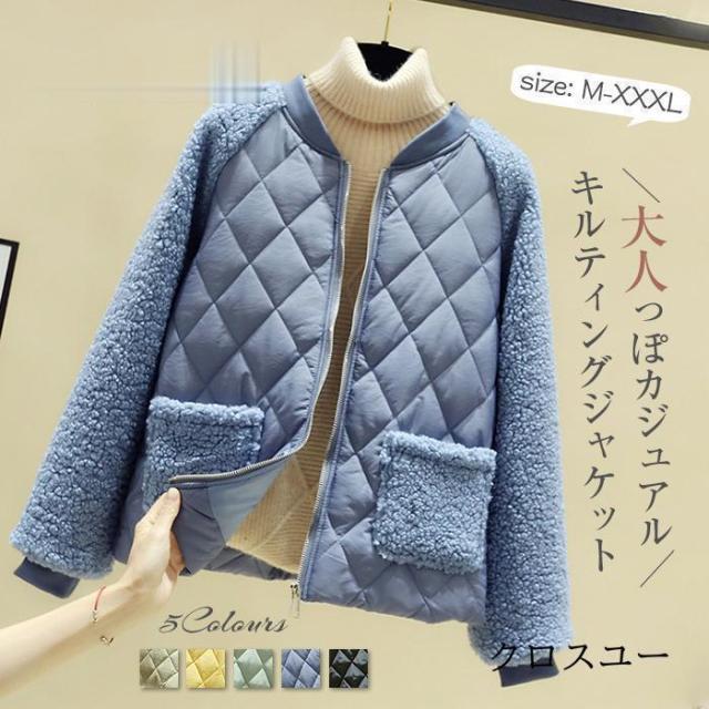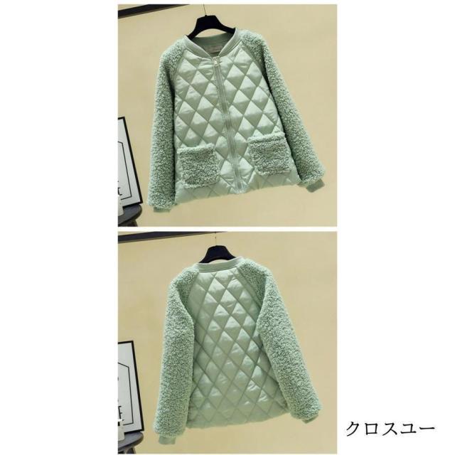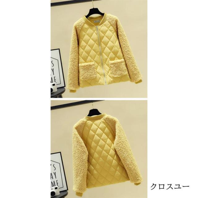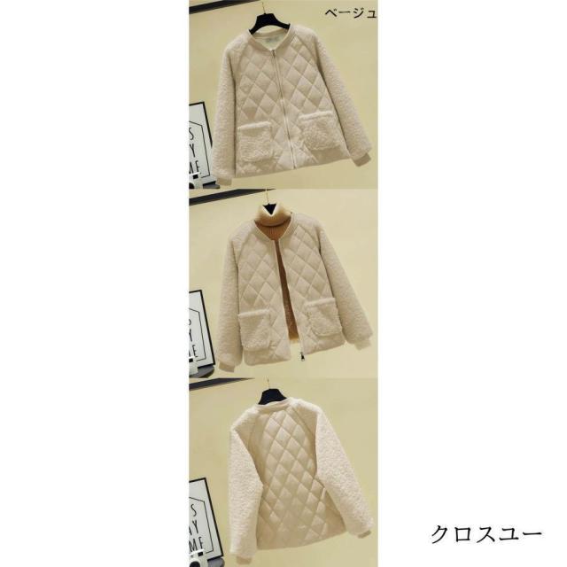 ノーカラー キルティング ジャケット レディース アウター 羽織り 上着 長袖 中綿 防寒 大きいサイズ ゆったり 秋 冬 キルティング 中綿コート カーディガン ボ