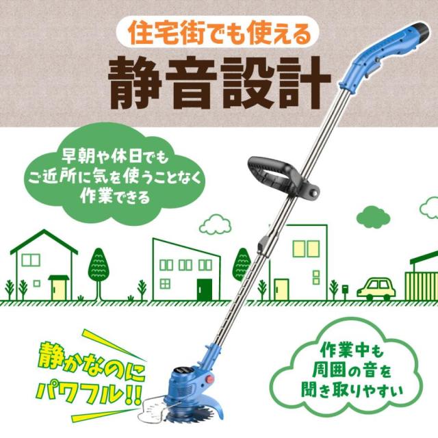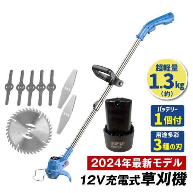 草刈り機 充電式 電動 バッテリー1個/4種の替刃付き 12V充電式お手軽草刈機 強力 静音 家庭用 軽量 パワフル グラストリマー