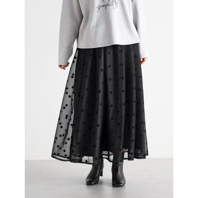 ヴァン(Vin)/フロッキードットメッシュフレアスカート