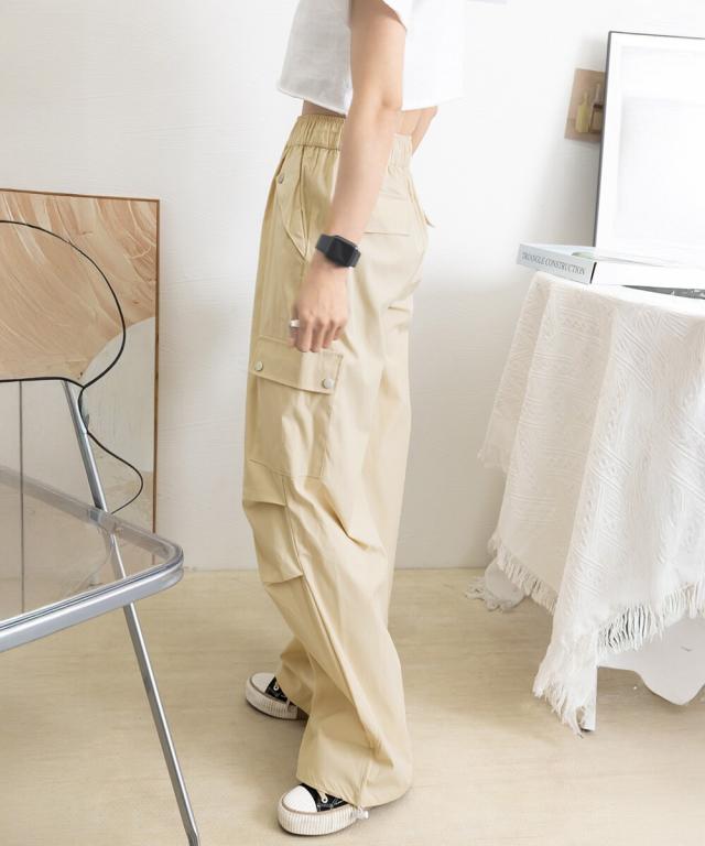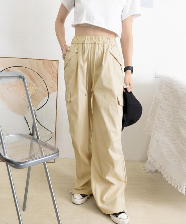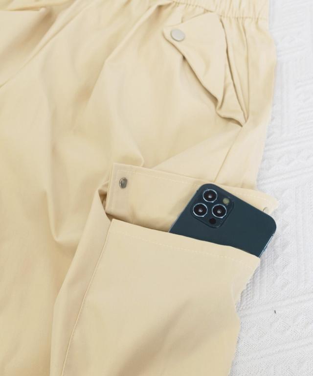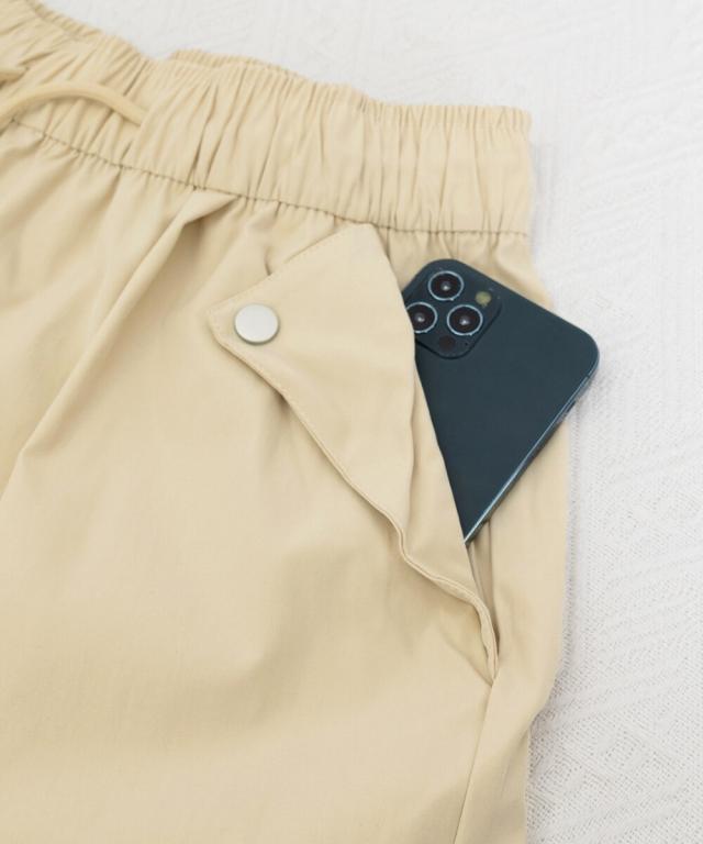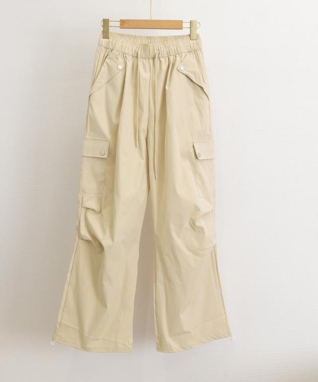 ウエストや裾のドローストリング仕様により、サイズ感の調整が可能